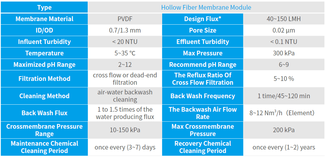 Notes: (1) *Treatment capacity at water temperature of 5℃ ;