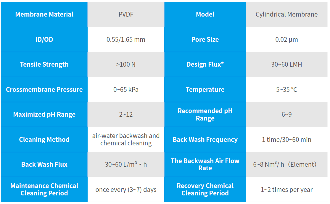Easy cleaning and maintenance: Due to composite hydrophilic modification technology, the membrane be preserved at dry state, and it is convenient to be stored, transported, cleaned and maintained;