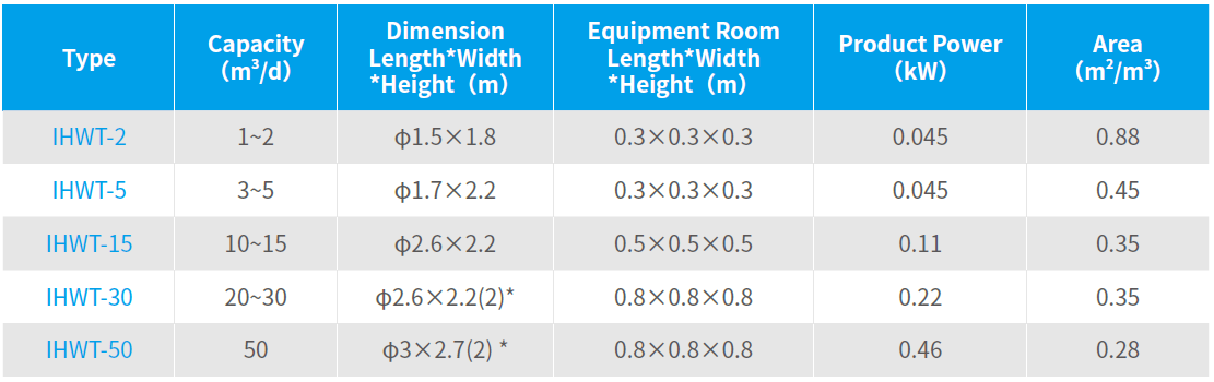 Notes: (1) The product power and footprint refer to the IHWT system only;